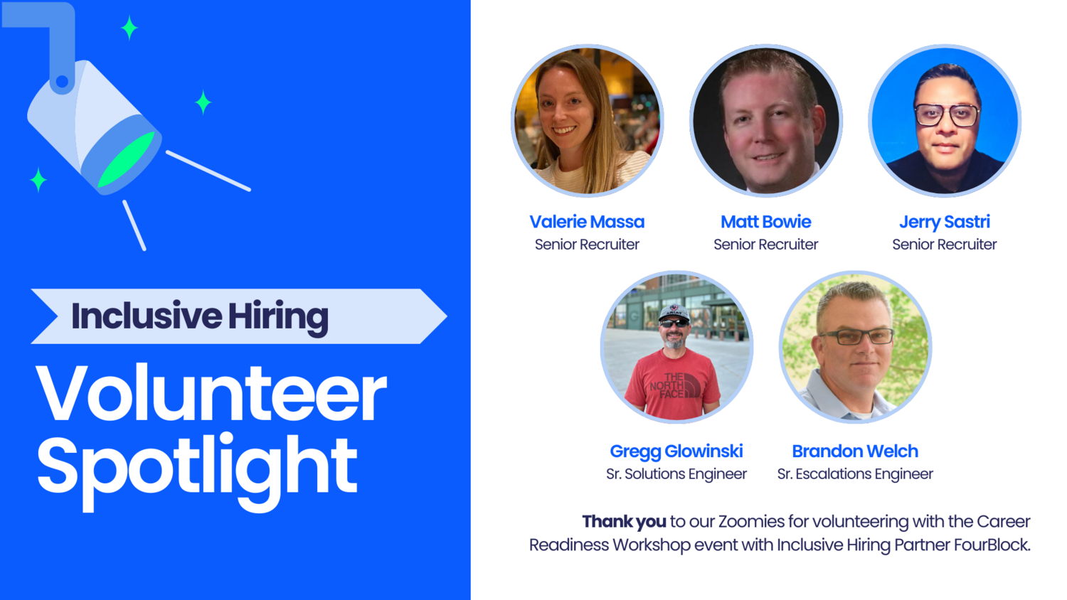 Teaming up with #InclusiveHiring partner FourBlock, Zoom recently hosted a focused 2-hour virtual training session to guide transitioning veterans through job offers and negotiations. Led by Zoom volunteers from Veterans@Zoom and Talent Acquisition, the session offered practical insights and support to those shifting from military to civilian careers, reinforcing Zoom's commitment to inclusive hiring and breaking down barriers for underrepresented talent, particularly transitioning veterans, who may be interested in joining Zoom.